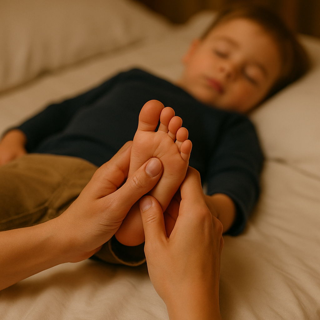 Zřeďte několik kapek směsi v nosném oleji a jemně vmasírujte do chodidel. Podporuje relaxaci a pocit bezpečí před spánkem.