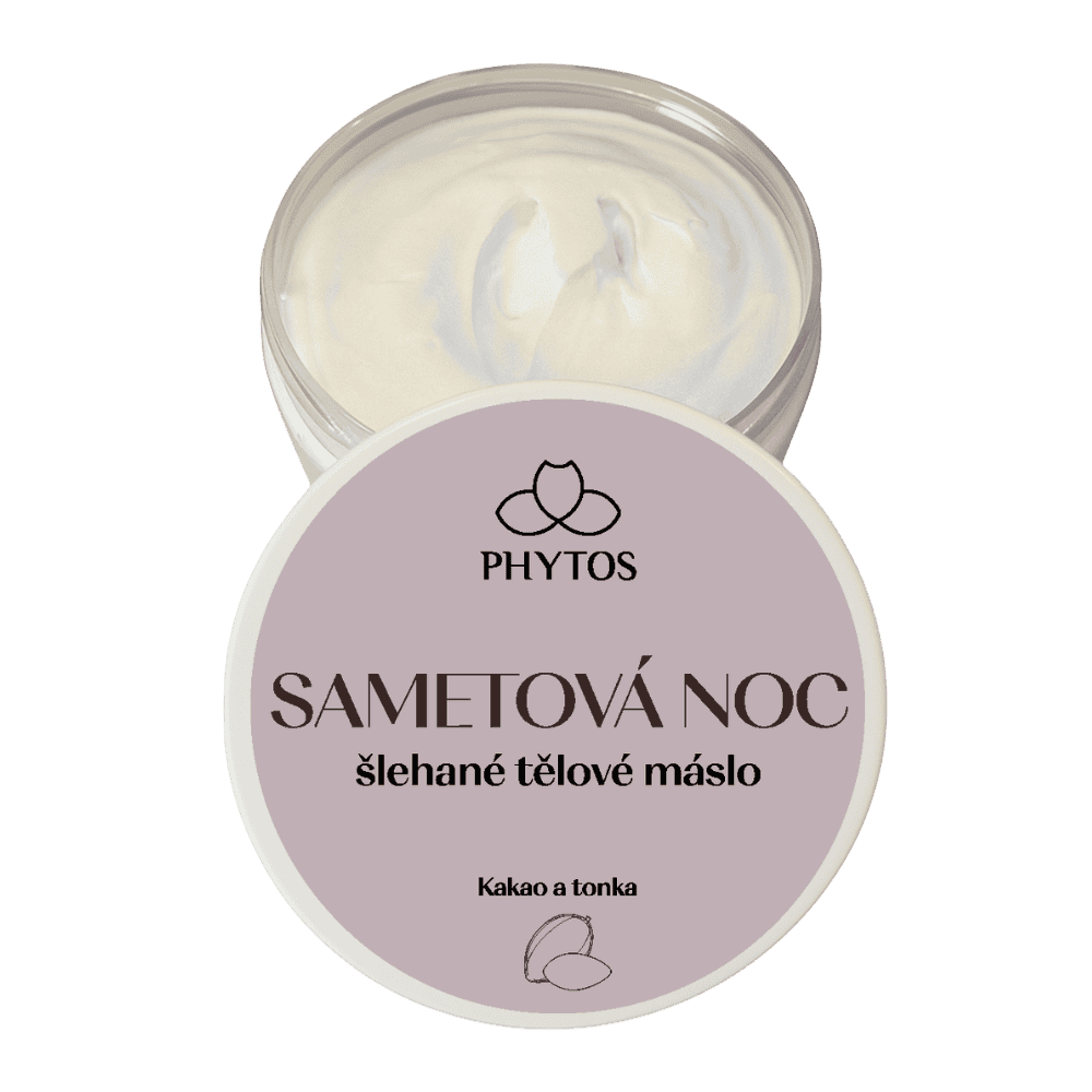 Objevte hřejivou eleganci v podobě šlehaného tělového másla Sametová noc. Kombinace kakaového másla a extraktu z tonka bobů a kakaa vytváří jedinečně smyslnou vůni s nádechem vanilky a mandlí.
