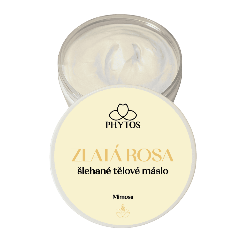 Jemnost květů mimózy a zlatavý lesk pokožky. Šlehané tělové máslo Zlatá rosa přináší něžnou květinovou vůni a bohatou péči v jednom.